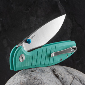 The handle also creates a visual impact being made from jade coloured G10. A pocket clip is attached and a lanyard hole allows you to add a lanyard and make the knife your own.