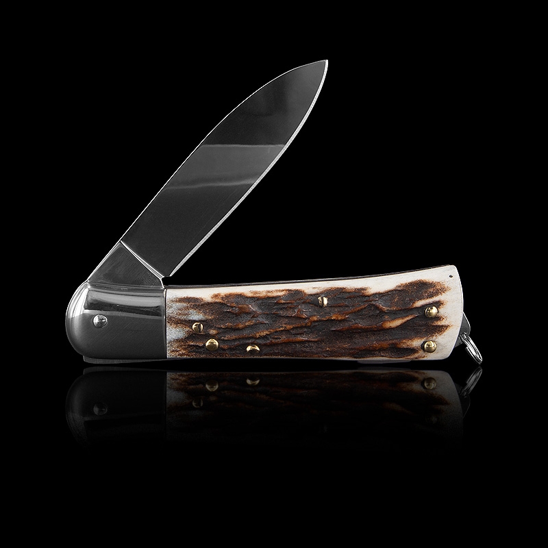 The Mercury Hunter Stag Folding Penknife is another fine example of craftsmanship meeting functionality. This Italian-made knife boasts a polished stag horn handle, providing a luxurious feel while being extremely tough.