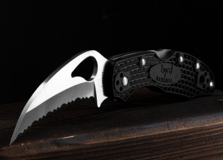 Hawkbill blades curve inward like a bird's talon, with the sharpened edge on the inside of the curve. Two main variants exist: the traditional hawkbill with a moderate curve, or with a pronounced inward curve.