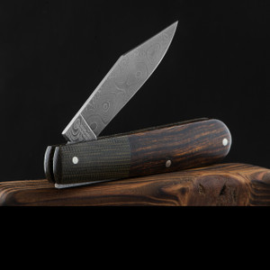 This is really a work of art and although fairly small a lovely example of the Böker Barlow style. Lovely well engineered mechanism, attractive Damascus blade, the Micarta is perfect and seamless as it bonds to the iron wood scales, I even like the handle pins. I think this will stay in the house and I will just admire it regularly. A gentleman pocket knife if ever there was one. Oh and great service again from HH