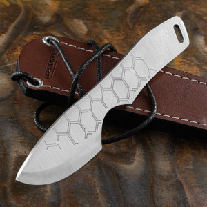 This is an excellent value neck, come pocket knife. I reckon it's a mix of an EDC/Camp/Bushcraft knife. It's razor-sharp out of the box with a strong stainless steel (5Cr14MoV) full-tang design, and a proper Scandi grind. I love the honey comb/ hive pattern on the body of the knife. It makes it a very distinctive piece. The blade design looks good. It's basic, really cool knife. I like the bare/skeletonized handle. It feels good in my hand, and comfortable to use. It's light. It would be easy to wrap paracord around it if required for a different grip. Also a nice lanyard option. The brown leather sheath is absolute quality and comes with leather cord. Gives a nice snug fit. It's well thought out, stunning piece of kit for a great price! Easy to to carry or stow away in your kit. BPS is a pretty impressive company and produce some excellent kit. Top job again Heinnie Haynes supplying some fantastic products and ranges