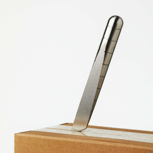 Drawing inspiration from the Japanese kiridashi knife, Craighill set out to make something elemental and functional, but with a form factor more closely related to a writing tool. They drew on experience designing and manufacturing the unique Ripple Bottle Opener, starting with ⅝” round stainless bar stock and working with a subtractive process to cut material away. They first notched the material at ½” intervals to provide grip — and allow the knife to double as a quick visual ruler — then made two compound cuts to create the cutting edge. The flat ground edge is easy to maintain, meaning it’s simple to hone if you ever need it razor sharp.