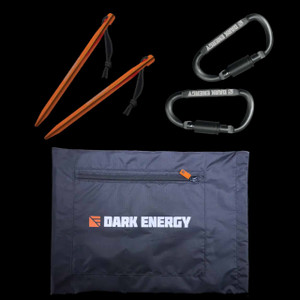 - Includes: 2 stakes, two locking carabiners, Storage Pouch