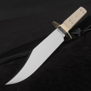 The John Nowill Ivory Bowie is supplied with a tough, black leather belt sheath.