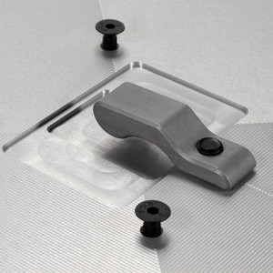 This base plate is designed for use with KMFS sharpening systems. It is constructed from solid aluminium, while the clamp is made from high-strength Ergal 7075 T651. The surface features a natural anodised finish for added durability.