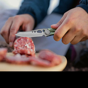 The Leatherman Skeletool KB is a lightweight and versatile folding knife with a skeletonised frame, weighing just 36g (1.3 ounces). The blade is made from an improved, high-carbon (HC) form of 420 stainless steel that works well with high production tooling. 420HC's strength is optimised in Leatherman multi-tools by heat treatment. The handle is type-2 anodised aluminium which is an aluminium with a porous coating that provides wear and corrosion resistance.