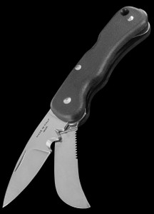 The Mac Coltellerie Electrician's Two Blade Knife Knife is a tough working knife designed for the jobbing electrician. It features two blades one locking with two wire stripping cut outs and one non-locking with a part serration and an inward curved form. Both are polished stainless steel with a nail nick.