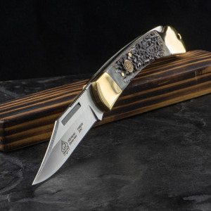 Complementing the high-performance blade is a beautifully designed handle featuring genuine stag scales, offering a comfortable grip and a classic aesthetic. Brass bolsters provide additional strength and elegance, while the reliable back lock mechanism ensures secure operation during use. Whether you're a collector, hunter, or simply appreciate fine knives, the Puma SGB Warden Stag delivers timeless style and dependable functionality, making it a trusted companion for any adventure.
