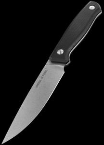 The blade is made from 9Cr18MoV stainless steel that has undergone cryogenic treatment, giving the knife extra durability and sharpness. It has a stonewash finish and has a full tang structure with a rounded back spine.