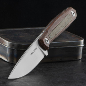 The Real Steel Dex fixed blade, designed by Ostap Hel, is built for performance and durability. Crafted from K110 steel, the blade features a flat grind for efficient cutting and a rounded spine for added comfort during use. The full tang construction ensures maximum strength, making it a reliable choice for tough tasks.