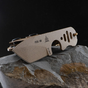 The fact that the tool is designed out of 1095 high carbon steel that is ⅛” thick, enables the carrier of the FDX 66 to keep it placed close to the body yet easily available. It has a skeletonized handle to keep the weight minimal, but provides excellent traction. The index finger cutout ensures a safe and secure grip while being used. The blade and handle are covered with a coyote tan finish to protect the steel from the elements.