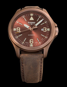The Traser H3 P67 Officer Pro was already a superb looking watch but give it a vintage bronze case and leather strap and it becomes something very special and highly desirable. The inner workings too are equally worthy of the serious watch buyers attention. The Swiss Made automatic movement relies on simple body movement to wind the mechanism whilst gaseous trigalight capsules and Super-LumiNova numerals ensure illumination 24/7.