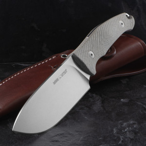The Viper Ranger Micarta is a lightweight, high-performance fixed blade knife, crafted for versatility and ease of use. Featuring a 97 mm blade made from premium Böhler N690Co steel with a Rockwell hardness of 57–64 HRC, it delivers outstanding edge retention and corrosion resistance. The blade’s stonewashed finish adds a rugged aesthetic while minimizing visible wear. Built with a half-hidden tang for reduced weight and improved balance, the Ranger is slim yet robust, offering exceptional handling for a wide range of outdoor and everyday tasks.