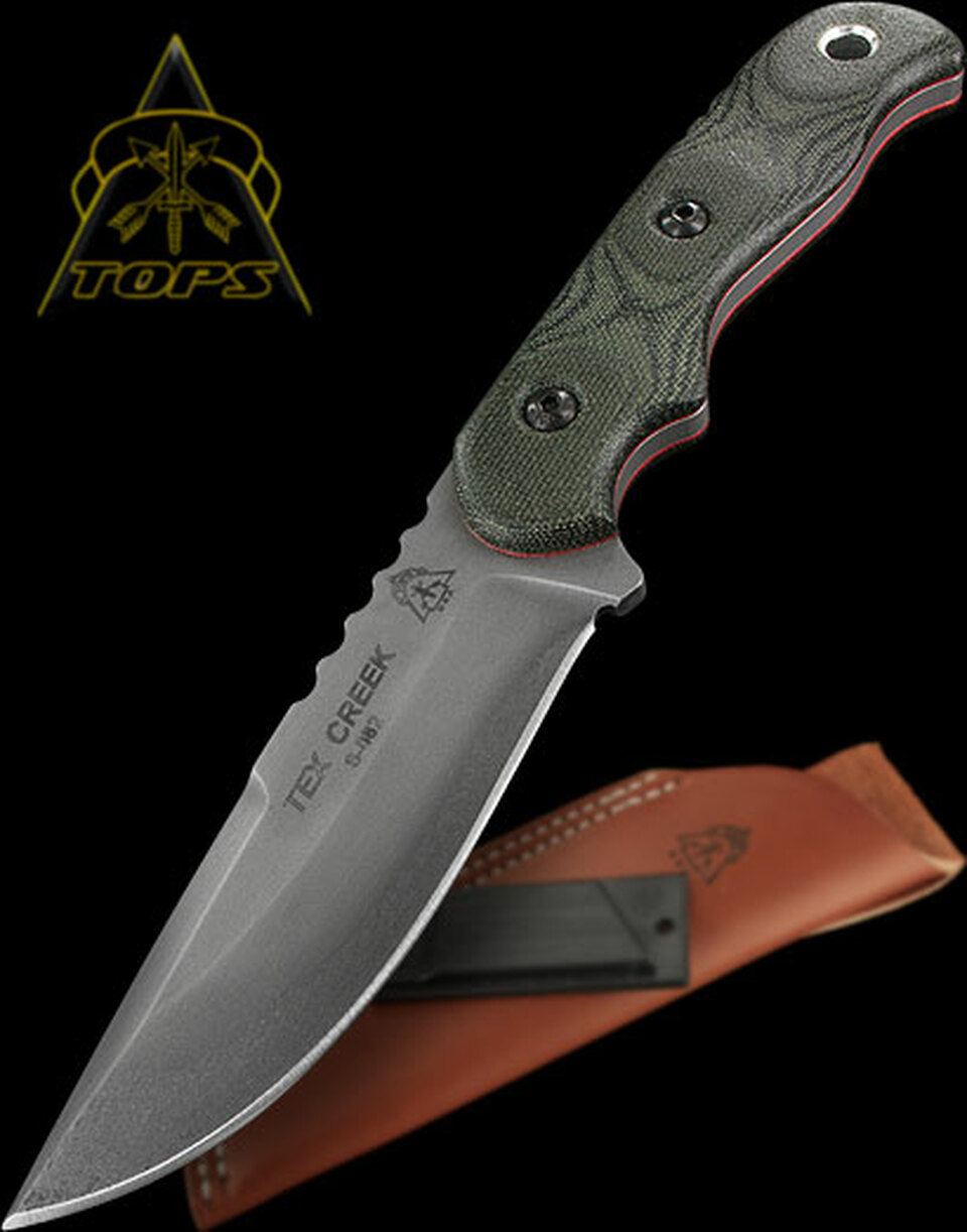 The Tex Creek has a similar grind to Fallkniven F1. Which as wit the Fallkniven makes it a versatile and good all round hunting knife. What makes this knife stand out from the rest is not only its distinctive appearance with the riverwash/stonewash finish, but the addition on a finger chill for precision work. This is a great asset for any knife, especially a hunter looking at working with small game. On the top of the handle there is also a good amount go gimping which enhances grip both when using the finger chill and not. Like all the knives we’ve seen so far this is a also a full tang knife, and like the Fallkniven F1 the balance point is slightly towards the butt of the knife compared to the Buck Special. Looking at the sheath. We love the leather sheath again it has that proper leather look, feel and smell, the only problem it that the knife isn’t as secure in this sheath as it is in the others.