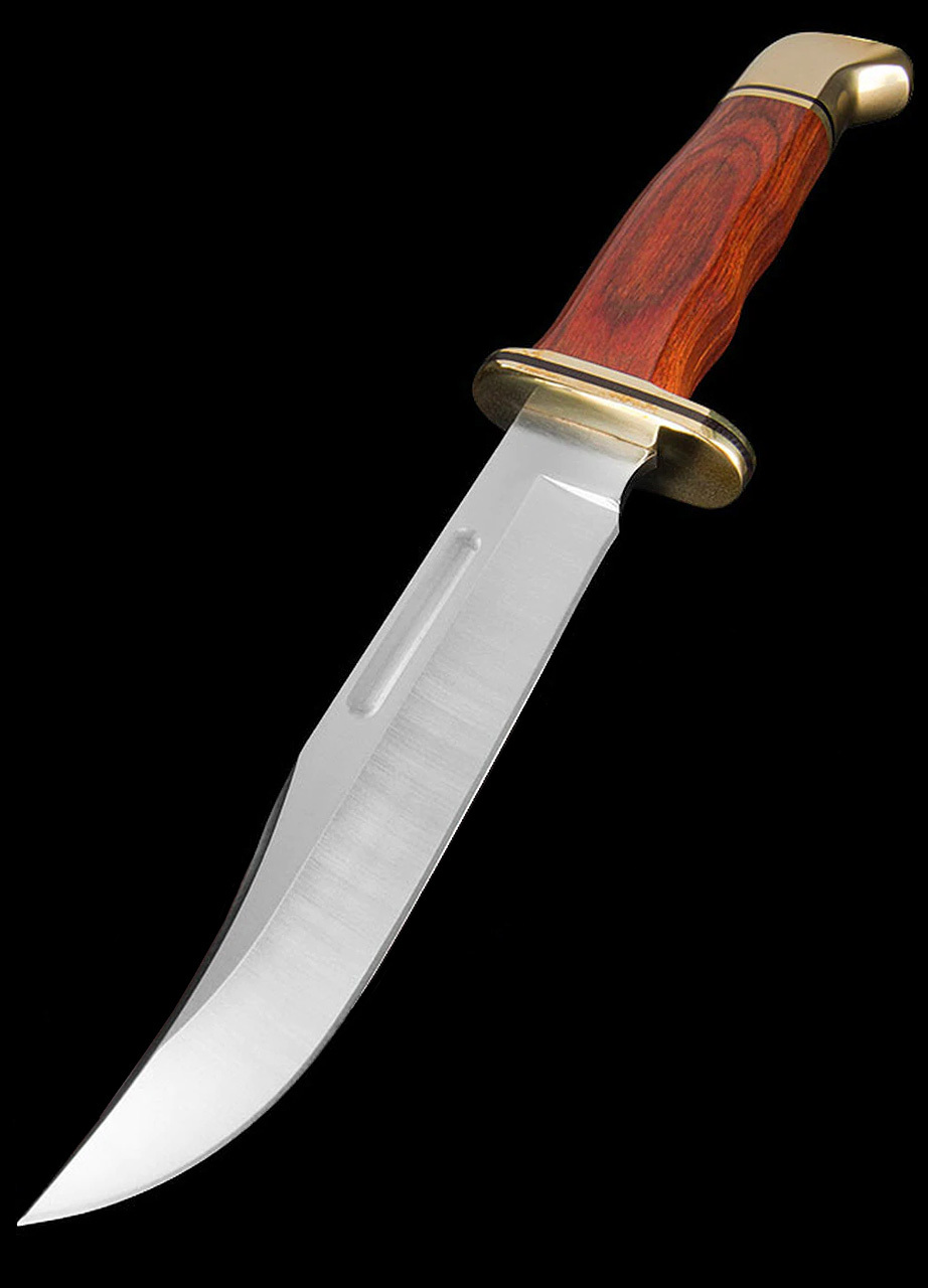This is the biggest of the four knives we are focusing on today. It’s a heavy knife too but that’s not a bad thing necessarily! The blade itself is striking not only because of the Bowie shape but because it’s blindly shiny. It’s not too much different from the Buck Special in terms of shape and style. The handle does differ. The feel of it is really nice, and the shaping of the belly makes for really comfortable holding. The knife is well balanced too for a knife of it’s size, and really although it’s a big knife it doesn’t necessarily have the weight you may expect. Just because it’s lighter though, don’t expect any less bang for your buck! It’s a knife with a purpose in mind.